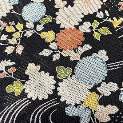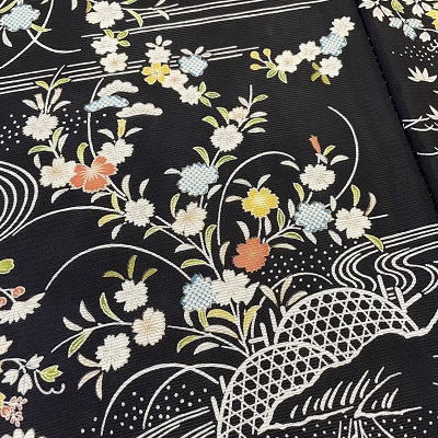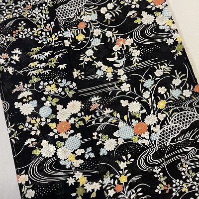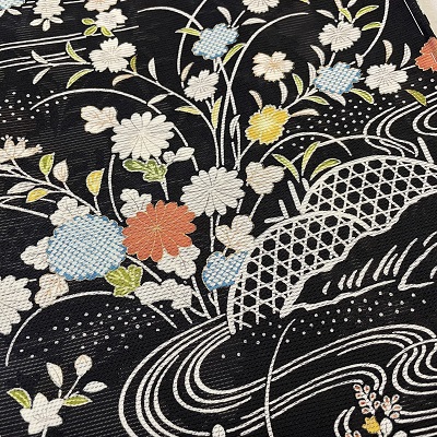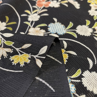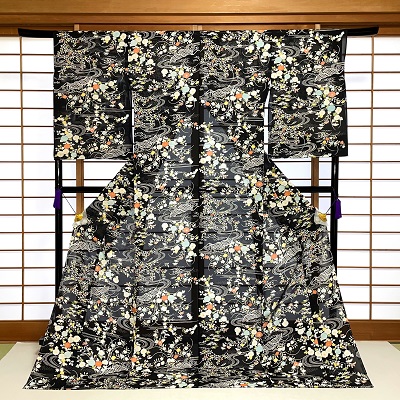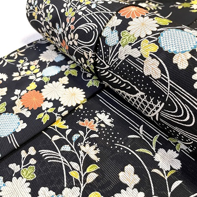 優雅な御所解き文様は古典文様の代表的な染めですが、黒地に映えて夏物でも美しいですね。