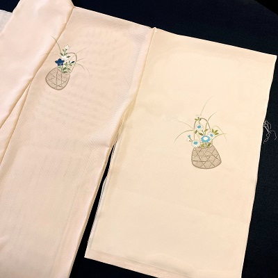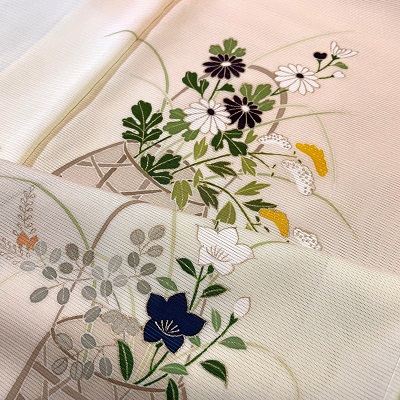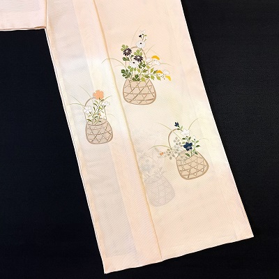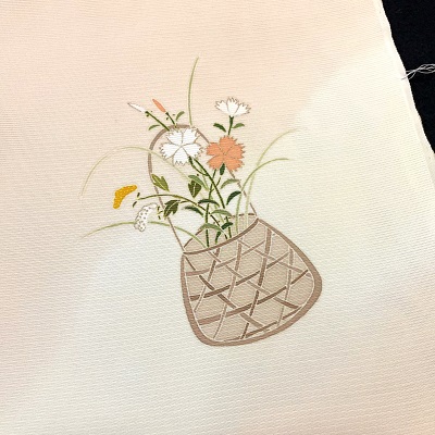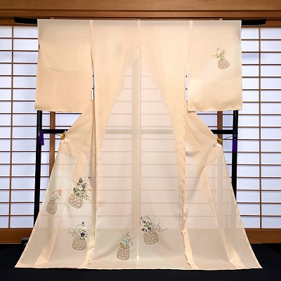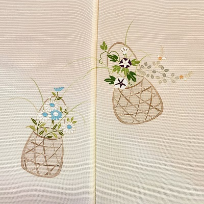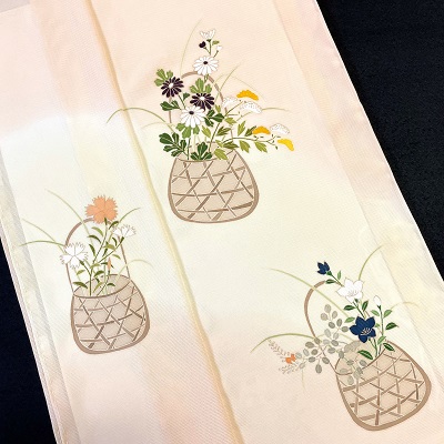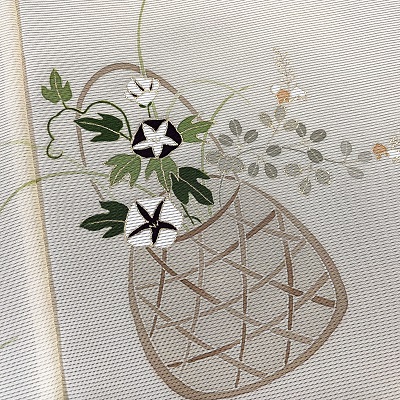 上質な五泉の絽に花籠を表した夏の付下げでございます。