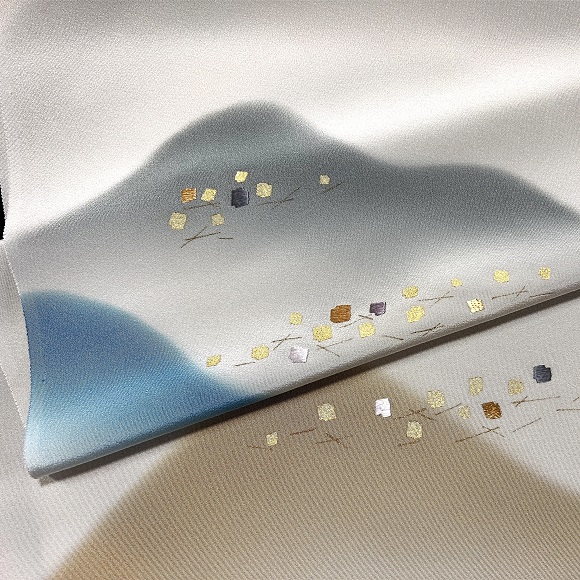 本日ご紹介致します商品は、遠山暈しに切箔縫付下げでございます。