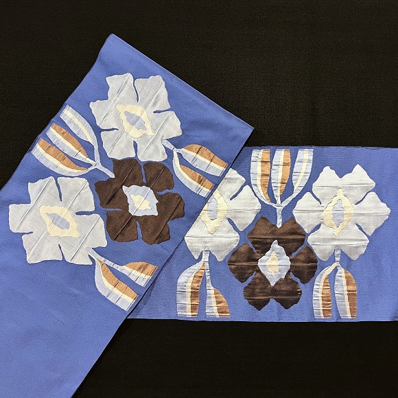 フロリチカと名付けられた膨れ織りの九寸名古屋帯。