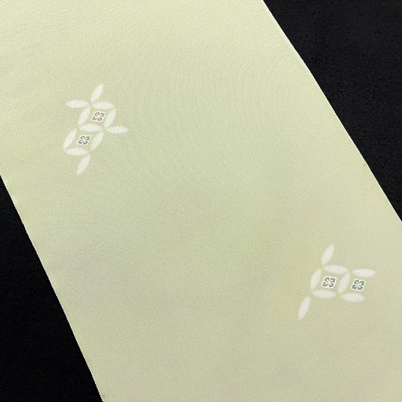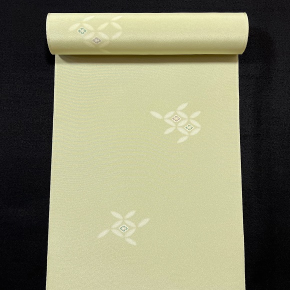 はんなりした地色に控えめな飛び柄ですので、カジュアルはもちろんですが少し格調高い帯を合わせていただきますと、ちょっと気の張る場所でもお召いただけると思います。