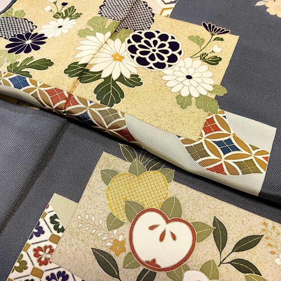 本日ご紹介致します商品は、色紙取り有職草花付下げでございます。