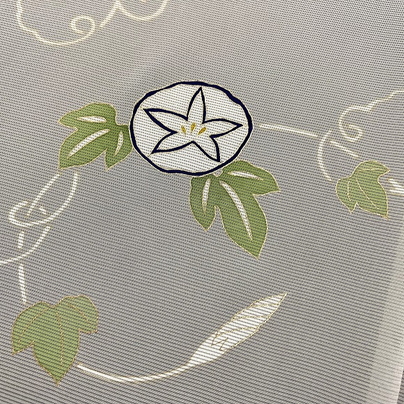 しかし朝顔文様は浴衣の柄にもよく使われる様に、カジュアルな雰囲気を兼ね備えております。