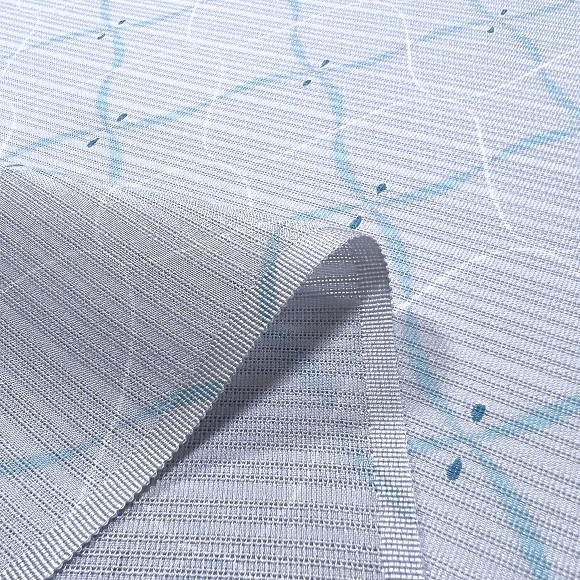 上質な横段の紗を藤鼠色に染め、網目文様を表した小紋です。
