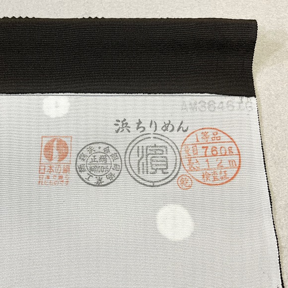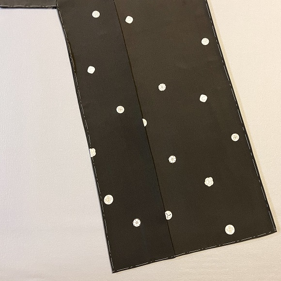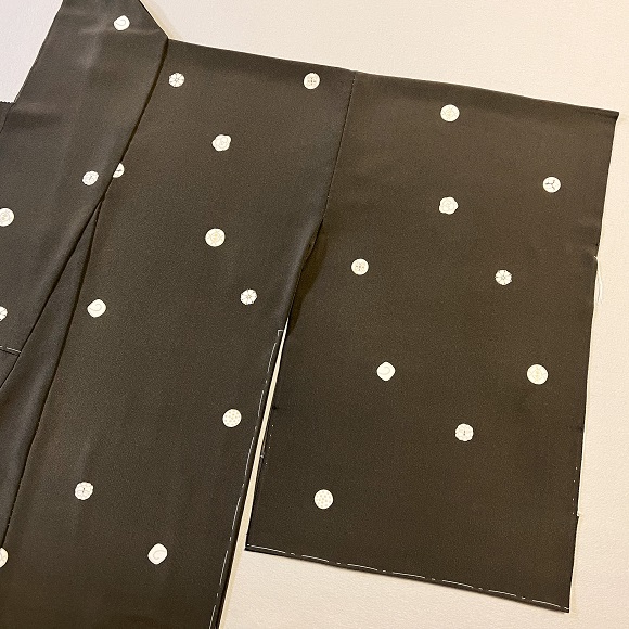そして良くお問合せいただく事なのですが、こちらの商品は未仕立てでございます。簡単な仮仕立てで撮影をした後に、直ぐ解き湯のし・筋や汚れの地直しをして反物状態に戻しております。現在は販売し易いように仮絵羽にしております。