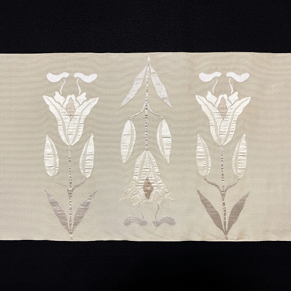 百合文と名付けられた膨れ織りの九寸名古屋帯でございます。