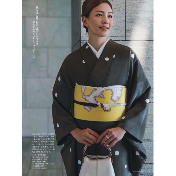 美しいキモノ2023秋号に掲載しております焦茶色(一番最後の画像)の色違いでございます。