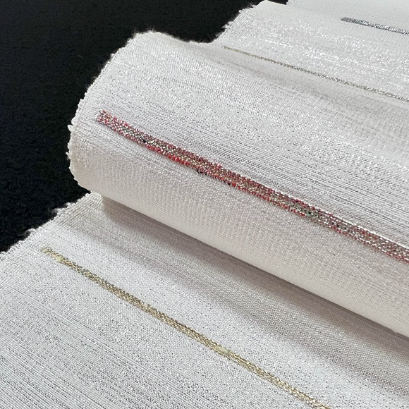 柄のカラフルな箔段文はねん金綴綿の新しい技法で織られております。