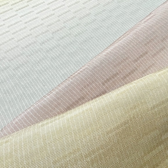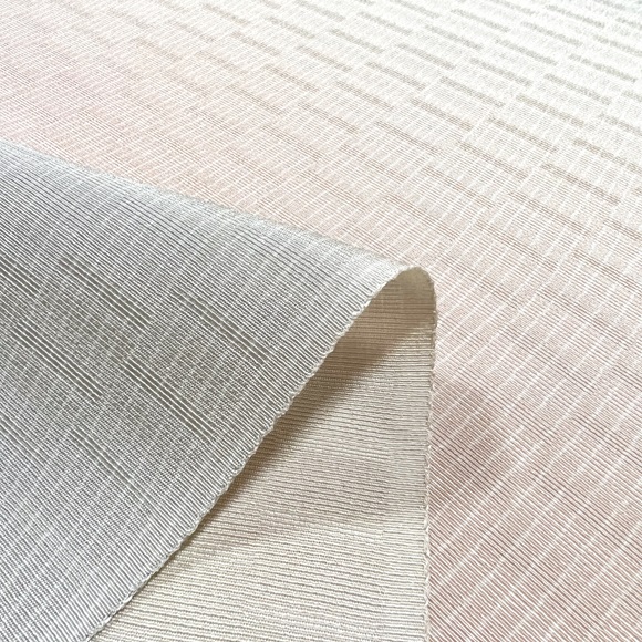 上質な影織り地に細かいヨロケ縞、そして横段に暈しを入れた小紋です。