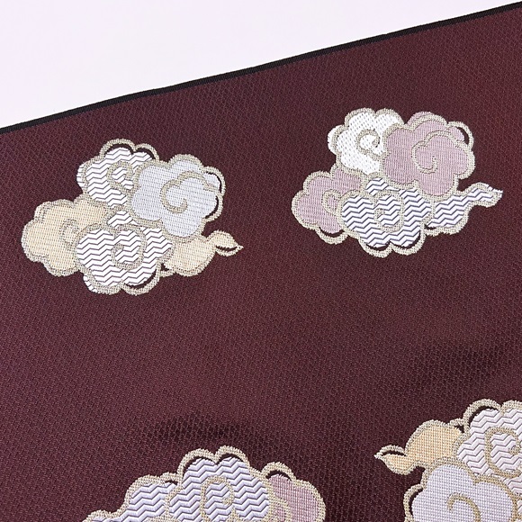 本日ご紹介致します商品は、洛風林の九寸名古屋帯「飛雲文(小菱濃紫)」でございます。