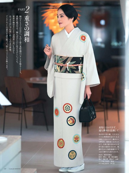 最後に『美しいキモノ的コーデ考』がテーマで、モデルの熊沢千絵さんの着こなしで、弊社おすすめの付下げを掲載しております。