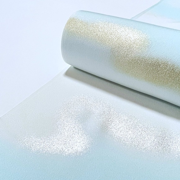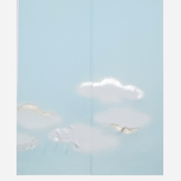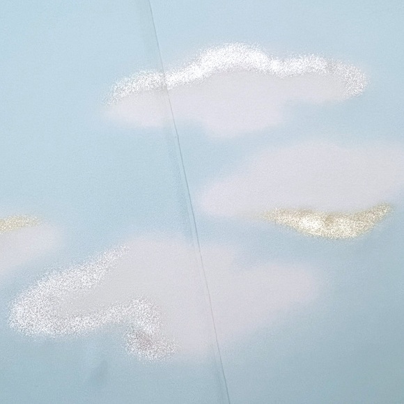 爽やかな水色地に、雲をイメージして白上げに暈し、金彩と銀彩を加え華やかさも取り入れております。