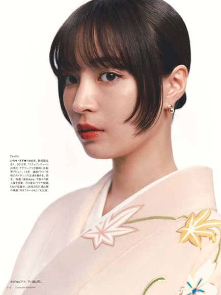 表紙を飾られた俳優・広瀬すずさんの着こなしで、弊社おすすめの付下げを掲載しております。