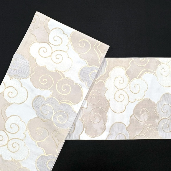 本日ご紹介致します商品は、洛風林の洸絲織袋帯「雲流(白茶)」でございます。