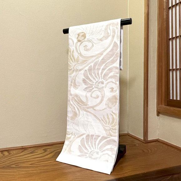 付下げや訪問着、小紋やお召などに合わせる帯として、コーディネイトの幅を広げてくれる素敵な1本になると思います。