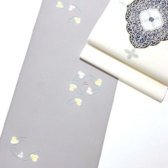 帯合わせも名古屋帯を合わせてカジュアルシーンでお召いただくのはもちろんですが、ちょっとフォーマル的な袋帯を合わせて付下げ風に着こなすのも素敵だと思います。
