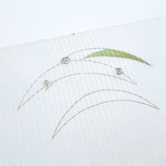 上品な金彩で縁取り手描きで表した露芝の中には撫子や桔梗、女郎花、そして露を銀駒刺繍で表現しております。