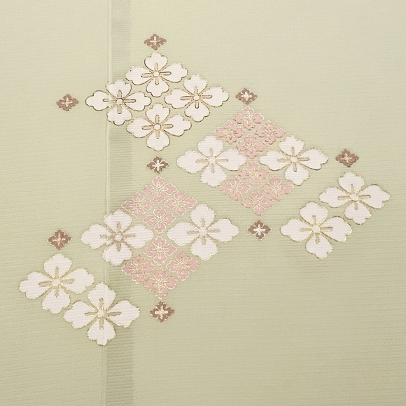二色の桃色と白上げで描かれた花菱文様は、全て金彩で縁取り格調高さも取り入れております。