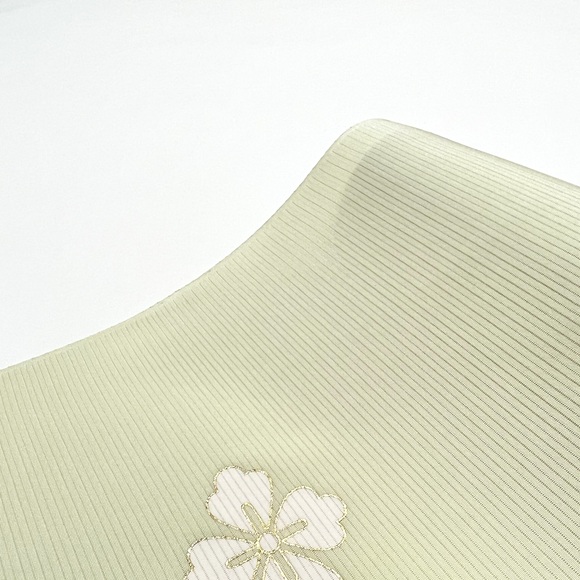 伊と幸の上質な重めの駒絽を鶸色に染め、花菱文様を配した夏の付下げです。