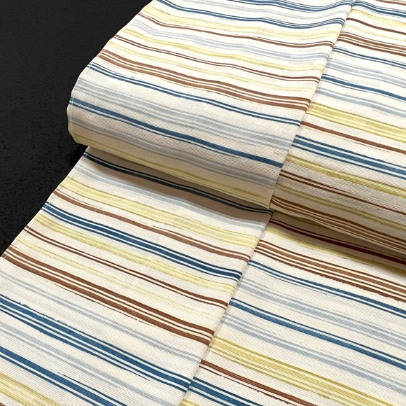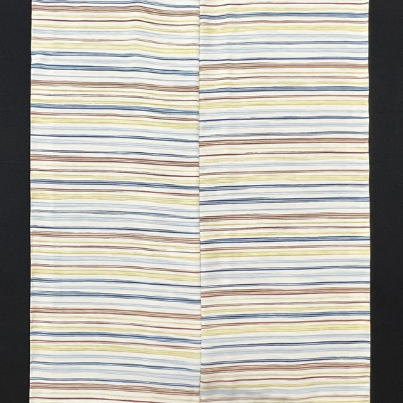 弊社ではお馴染みの上質な白生地「影織」を白茶色に染め、横縞を多彩に染め表した小紋でございます。