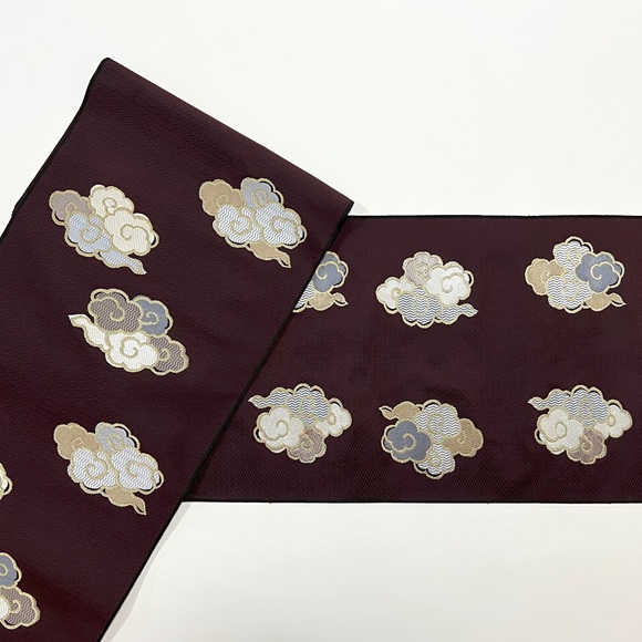 本日ご紹介致します商品は、洛風林の九寸名古屋帯「飛雲文(小菱濃紫)」でございます。