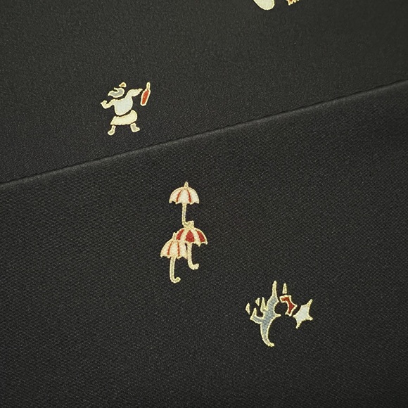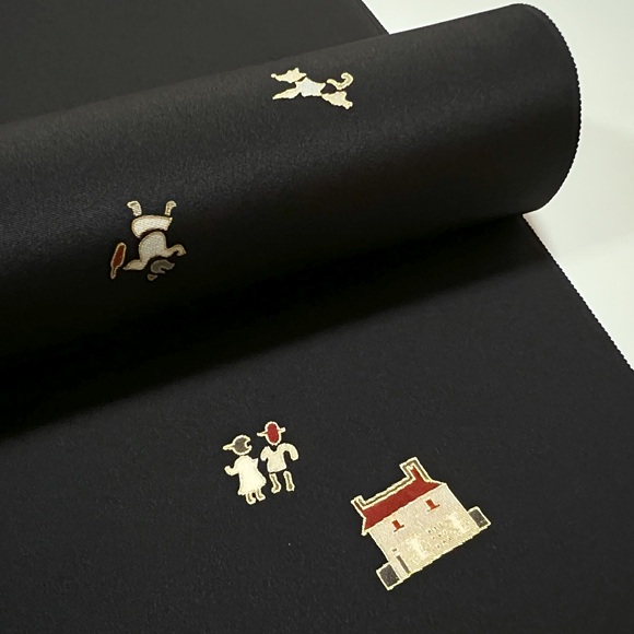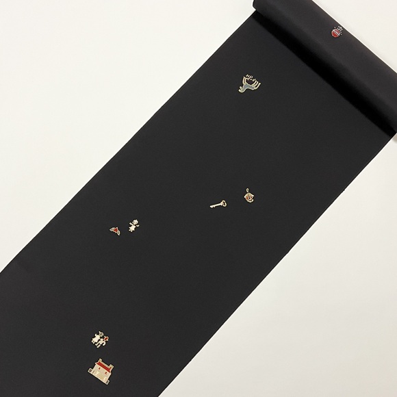 弊社ではお馴染みの上質な白生地「凛」を墨色に染め、日本生まれのフランスの画家・藤田嗣治氏(レオナール・フジタ)ゆかりの文様を散らした小紋です。