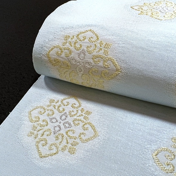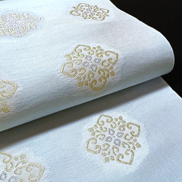 爽やかな水縹色の地色に控えめな金銀で図案化された唐花文様が見事に表現されております。