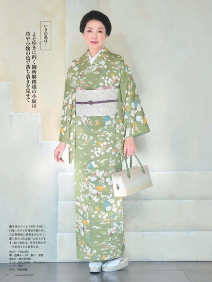 モデルの細谷理沙さん、そして仁科由紀子さんの着こなしで、弊社おすすめの小紋を掲載しております。