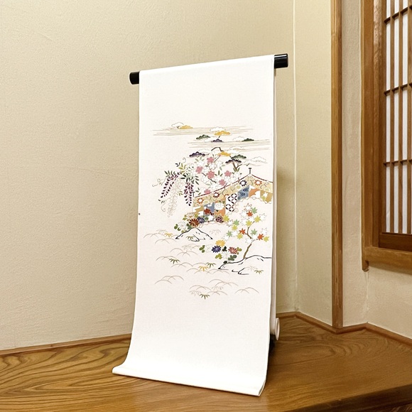 桜や藤、菊や楓など四季の草花を描いておりますので、春秋冬と袷の時期にお使いいただけますのが嬉しいですね。