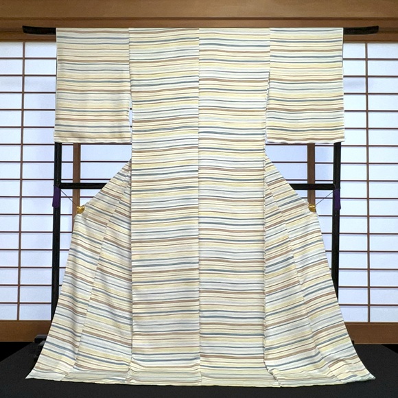 【横縞(黄・茶・青・水色)小紋 白茶地】