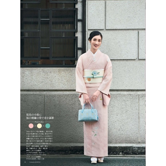 美しいキモノ2023年春号でも紹介されてます様に帯も薄色で合わせてはんなりした着こなしでも良いですが、濃い目の色の帯でキリリと合わせるのも素敵ですね。