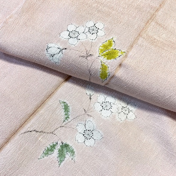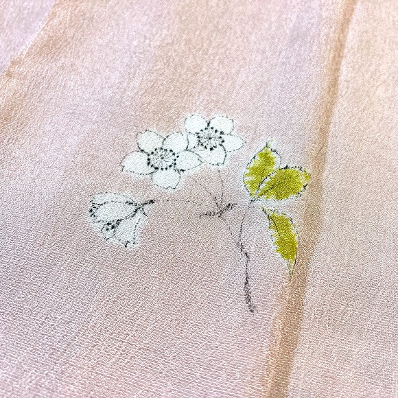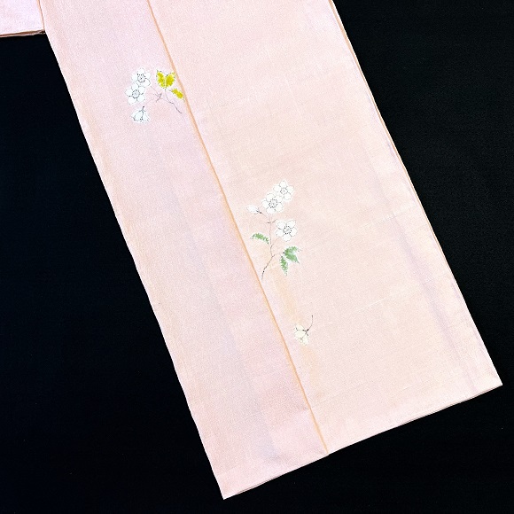 地色は「桜色」、はんなりしたピンクと申し上げたら宜しいでしょうか、暖かな春にぴったりの素敵なお色です。