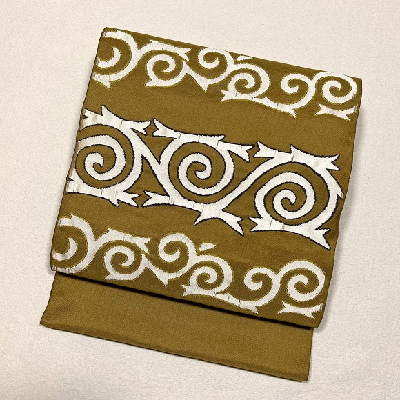 もはや説明はいらないでしょう、1954年創業で三宅清治郎、白洲正子、河合寛治郎、棟方志功など多くの文化人との交流の中で培った審美眼で世界中を旅し集めた染織品や工芸品を研究しイメージした図案で制作された帯。