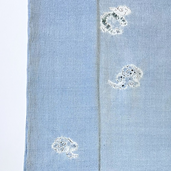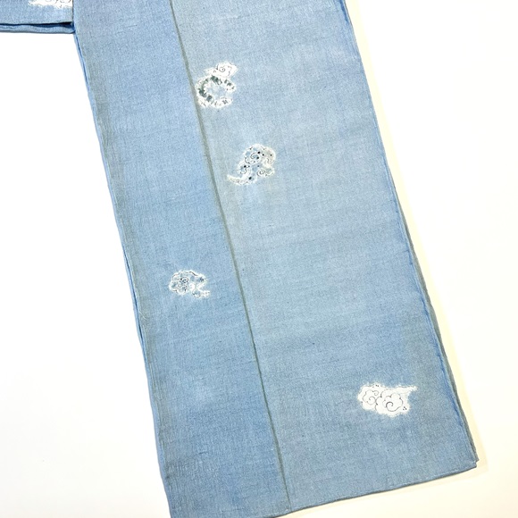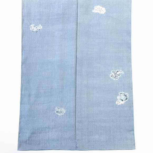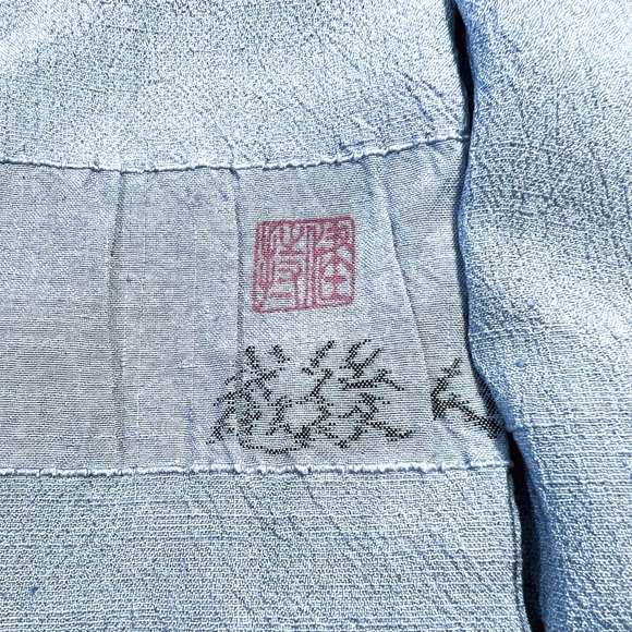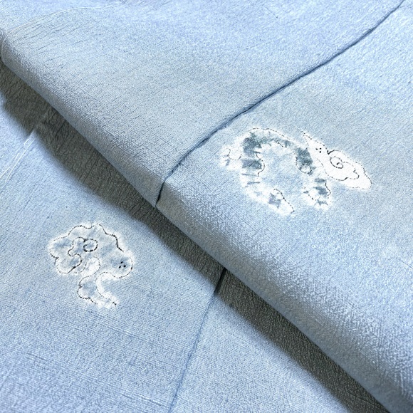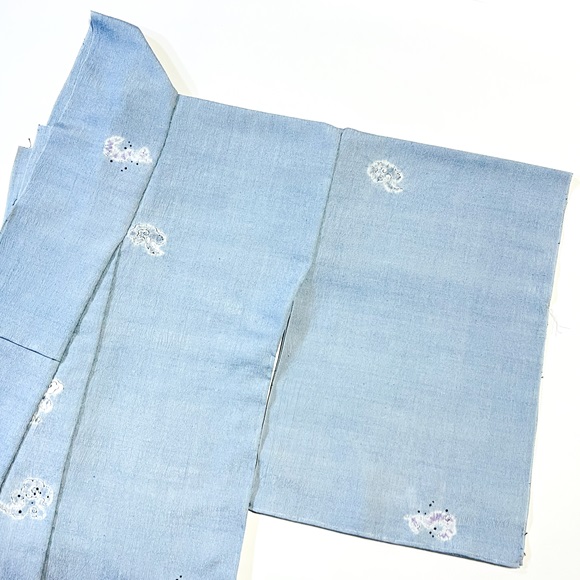 そしてよくお問合せいただく事なのですが、こちらの商品は未仕立てでございます。簡単な仮仕立てで撮影をした後に、直ぐ解き湯のし・筋や汚れの地直しをして反物状態に戻しております。現在は販売し易いように仮絵羽にしております。