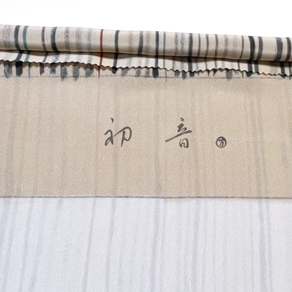 そして良くお問合せいただく事なのですが、こちらの商品は未仕立てでございます。簡単な仮仕立てで撮影をした後に、直ぐ解き湯のし・筋や汚れの地直しをして反物状態に戻しております。現在は販売し易いように仮絵羽にしております。