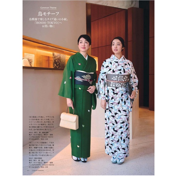 本誌の様に濃色地の瑞雲の帯で合わせて空高く飛ぶ鳥に見立てた装いもおしゃれですが、薄色の帯を合わせても素敵ですね。