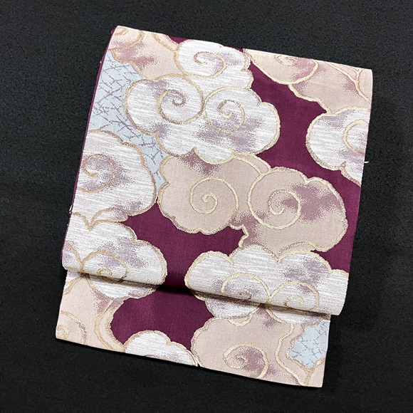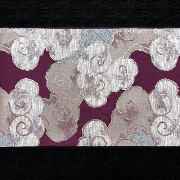 京紫の地色に洛風林ならではの配色で表された雲流はダイナミックで存在感がございますが、品よく洗練された美しさがあり、落ち着いた大人の着こなしに最適です。