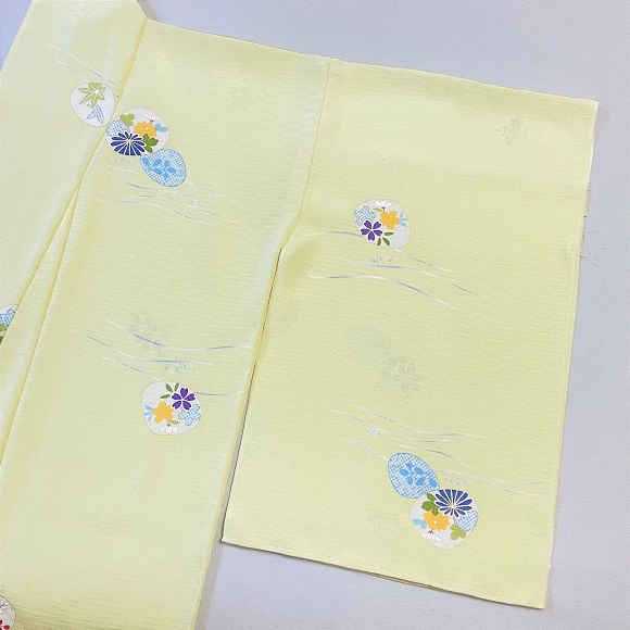 源氏貝の中には四季の草花と染疋田を表しておりますので、袷はもちろん単衣にお仕立されても大丈夫。