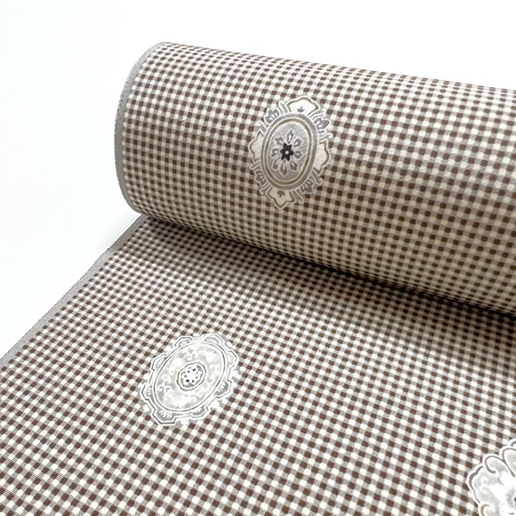 以前は小格子が黄土色のタイプを仕入れておりましたが、昨年10月の新作受注展で野口さんの会長さんがお召になられていたのを拝見して、弊社女将が「会長の着てはる色のええよね~」から話が始まり、待ちに待って今年6月の新作展で染めあがった小紋にご対面でした笑