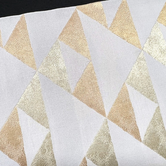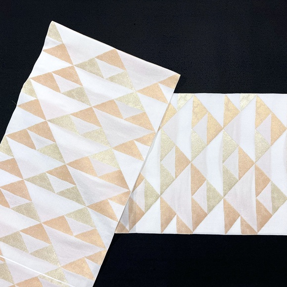白地に二色の金で織られたこの名古屋帯には品よく洗練された美しさがあり、落ち着いた大人の着こなしに最適です。