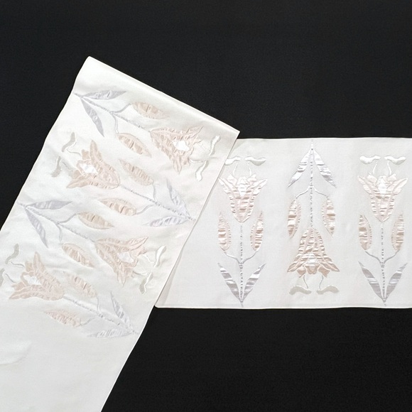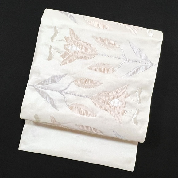 百合文と名付けられた膨れ織りの九寸名古屋帯でございます。