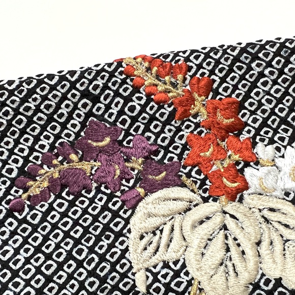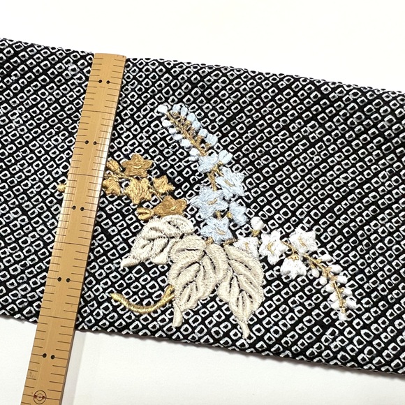 もちろん間違いでは無いですが、この名古屋帯は絞り染めの地色を黒色、そして刺繡もすべて落ち着いた色をつかっておりますので安心してカジュアルな装いにお使いください。