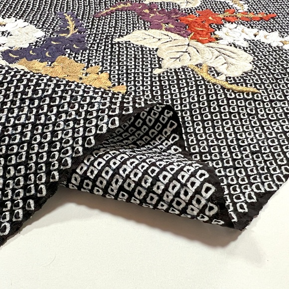しかし以前の総絞り地とはちょっと違うのですが、保管していた別の黒地の総絞り地出てきたので制作したとの事です。