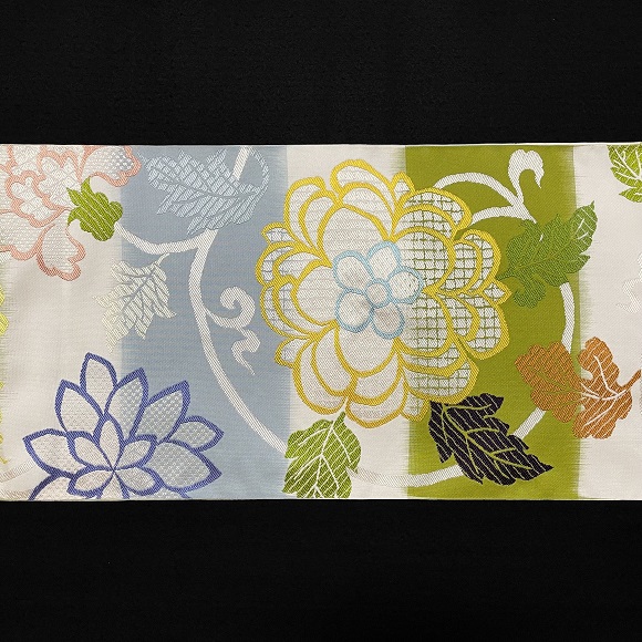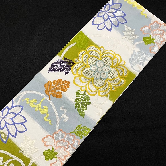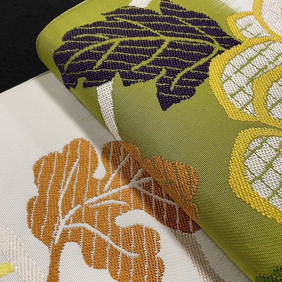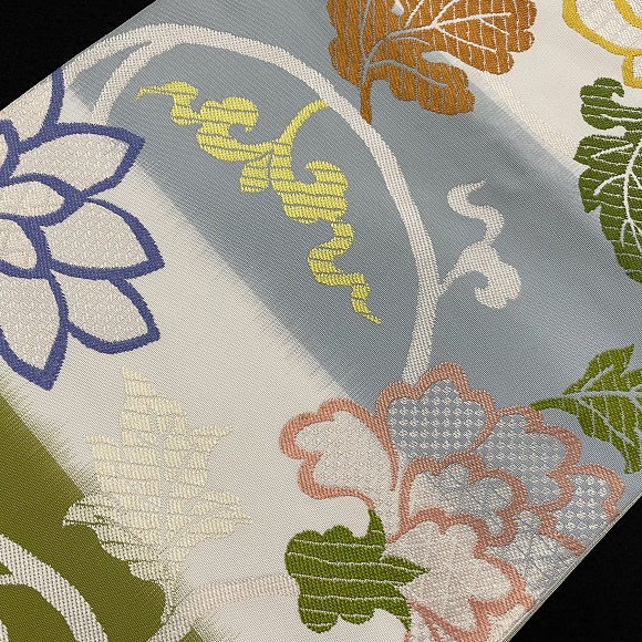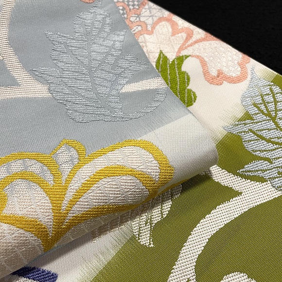 金属糸を使っていないので、おしゃれ用のお着物から軽いフォーマル用の付下げまで幅広くお使いいただけるのが嬉しいですね。