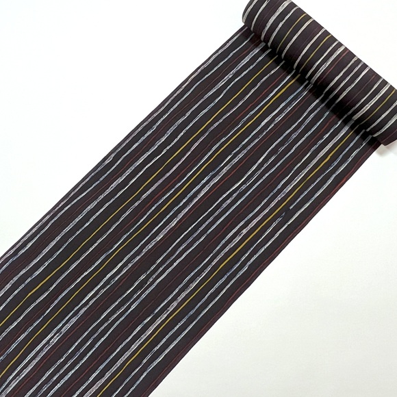 上質な鬼しぼちりめん地に蝋纈染めで縞模様を表した小紋です。
