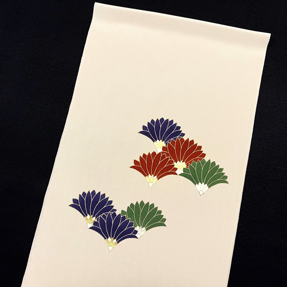 淡い黄色地に青海波風に並ぶ菊文様は、古典文様なのにとてもモダンな雰囲気を醸し出しています。