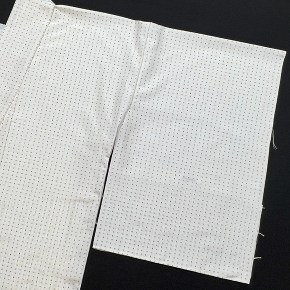 そして良くお問合せいただく事なのですが、こちらの商品は未仕立てでございます。簡単な仮仕立てで撮影をした後に、直ぐ解き湯のし・筋や汚れの地直しをして反物状態に戻しております。現在は販売し易いように仮絵羽にしております。