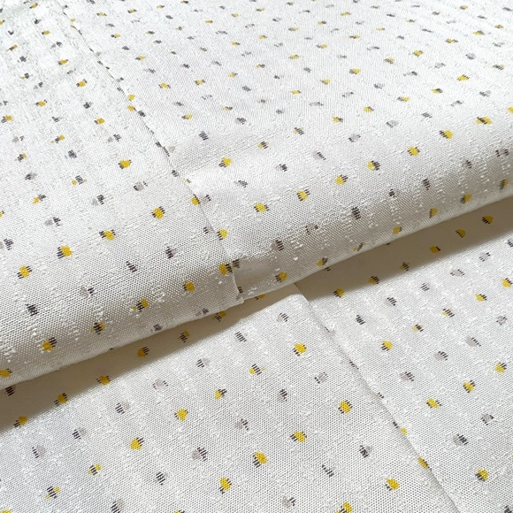小千谷紬のリング格子地に黄色とグレーの点描きを染めたモダンな小紋です。