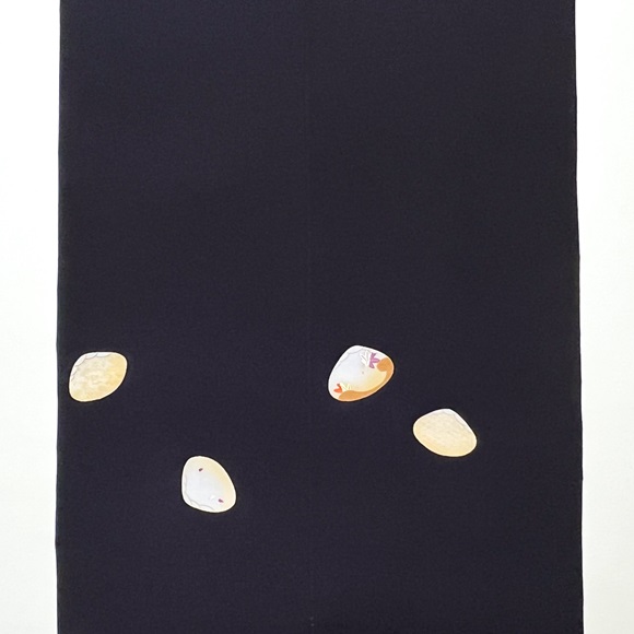 上質な白生地「凛」を濃い紫色に染め、貝取方(貝合わせ)文様を配した付下げです。