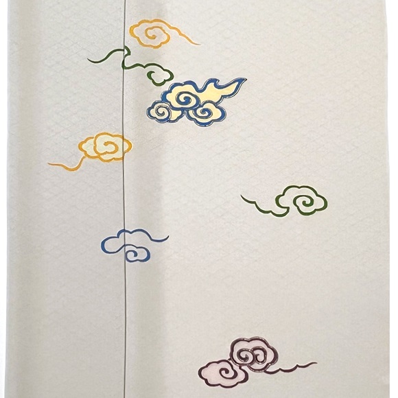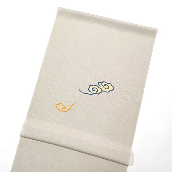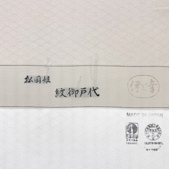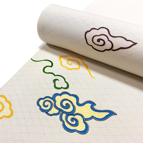 「伊と幸」の松岡姫で作られた紋御戸代の入子菱文様の白生地を使い、瑞雲文様を配した付下げです。